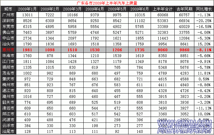 [attachmentid=224044]只作为参考资料之用. 看看笑之而已. 图表引于新华城市论坛. 茂名的上牌量增长率排在汕尾汕头之后的第三位. 全省只有四个市的的增长在两位数以上. 全省有14个市的增长成负数. 汕尾真是起对了名字.