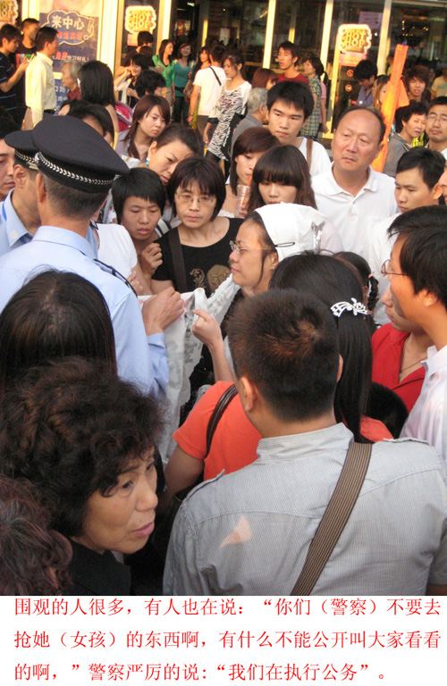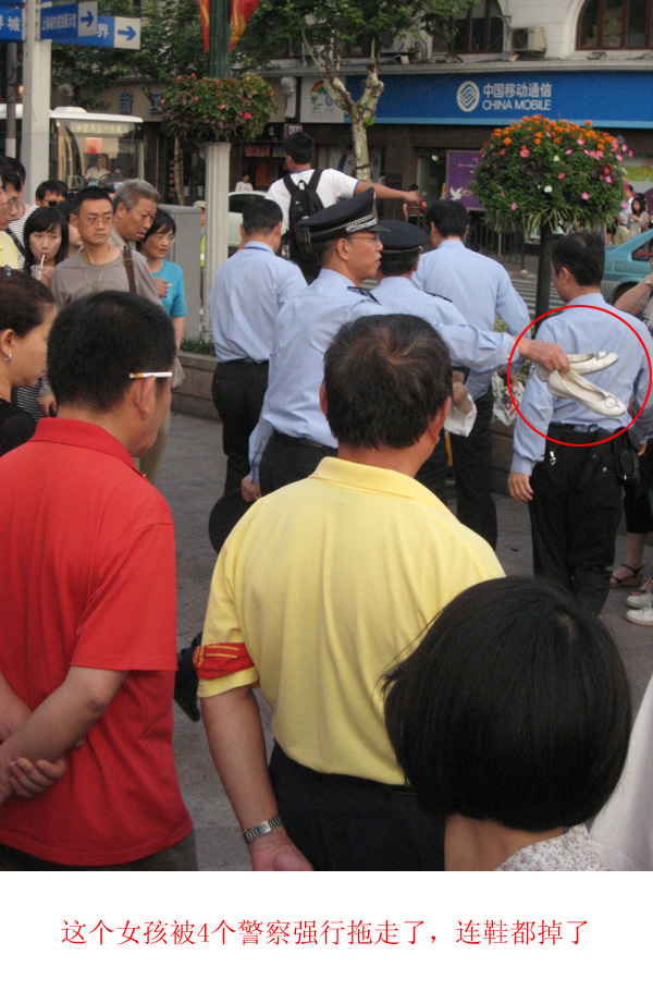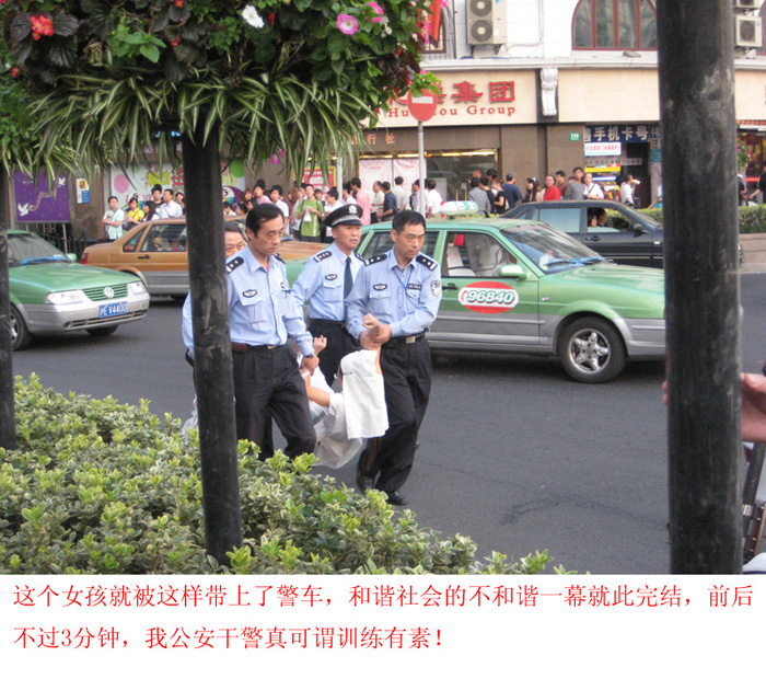 后来这女的被警察四个人一人一只手脚这样拎走的,长得也是瘦得可怜,执法一围,看都看不见.