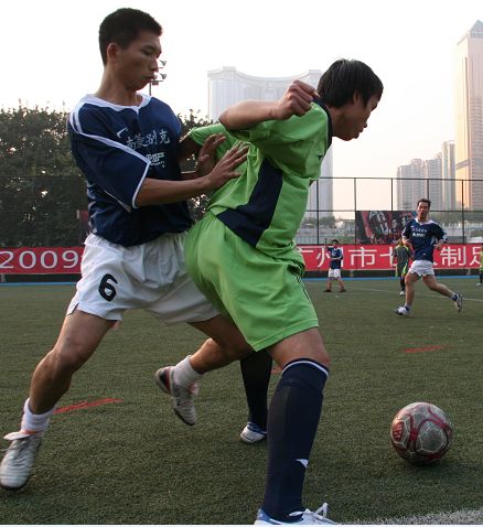 电白打比战,以少胜多同乡队险胜一线网络挺身32强! 上周末在海珠区宝岗球场进行的一场2009时代地产杯1/32淘汰赛中,上演一场精彩的电白打比战,两支来自电白的球队进行一场残酷的淘汰赛,球员都是来自电白老乡,双方球员知根知底,最终更加年轻的电白同乡2比0击败一线网络,历史性进入市赛32强,将继续肩负电白足球使命,在市赛征程上继续前进! 本轮电白打比战,对电白同乡队来说是屋漏偏逢连夜雨,主力后卫林德进因故缺阵,在首发阵容上只能将中场大将温清晖顶替,中场由潘俊鹏与队长谢天怀搭档,刘旭强在最前边游弋,另外两个后卫依然是林凡与邓志勇,门将是廖伟春,从布阵来看,电白同乡会先做好防守在打反击。反观一线网络本周的重视程度是空前的,小组赛以来,该队从未有来齐球员,而本场比赛所有12名队员齐齐到场,首发阵容也是排出最强的三叉戟攻击型阵容,门将有李耀毅、后防线由左到右分别是马燕飞、段超、杨志武;中场由陈志文领衔,前场是队长潘锴昌与李宝华,这样的攻击型组合,完全是志在必得之势。比赛准时开场,由于电白同乡将重点放在防守上,一线网络的中场过渡完全被电白同乡两名防守型中场潘俊鹏与谢天怀破坏,而右边杨志武的进攻刚巧又是遇上对方两名中后场谢天怀与邓志勇的联手夹击,根本无法发挥往常的威力,潘锴昌与李宝华不得不频频回来接应,而电白同乡战术到位,两个边路的反击最有威力,双方在上半场上虽然各有攻防,但双方都没找到致命一击,上半场双方0比0握手言和。 下半场异地再战,电白同乡首先在边路做文章,边路的温清晖与邓志勇不断交叉助攻到前场,反而一直引以为荣的一线网络的两个边路无法发挥威力,第29分钟,谢天怀与温清晖在右路撞墙配合,温清晖形成单刀,可惜面对出击的门将李耀毅稍慢没吊射而是带入禁区,李耀毅轻松没收。第34分钟,左路邓志勇断球在中场斜传到禁区,一线网络中午段超解围与门将配合误会,皮球落在门框前,快步插上的温清晖轻松推射入空门,也保持了市赛每场必入球的势头,电白同乡取得1比0领先机会。第42分钟,潘俊鹏在一次防守中踢到对方球员,裁判出示第二张黄牌变红牌将其罚下,这样剩下的差不多10分钟时间,电白同乡必须少打一个人来应付对方的狂攻,一线网当然明白这是个好机会,马上换上王维与吴兆龙两名进攻型球员,力求扳回劣势。可惜全线压上的一线网络再度给电白同乡偷袭成功,第46分钟,林凡在后场抢断与队友配合,快速突破形成单刀,带球进入禁区面对门将冷静用假动作射门入网,改写比分为2比0。基本锁定胜局,余下的时间虽然一线网络极力反击,可惜已经回天乏术,这样电白同乡以2比0击败兄弟球队一线网络,进入市赛32强淘汰赛。赛后双方球员都相互击掌庆祝,毕竟任何一队淘汰或者继续下一轮征程,都是自己兄弟自己人的球队,都是肩负找电白足球的使命,希望电白人球队继续凯歌!