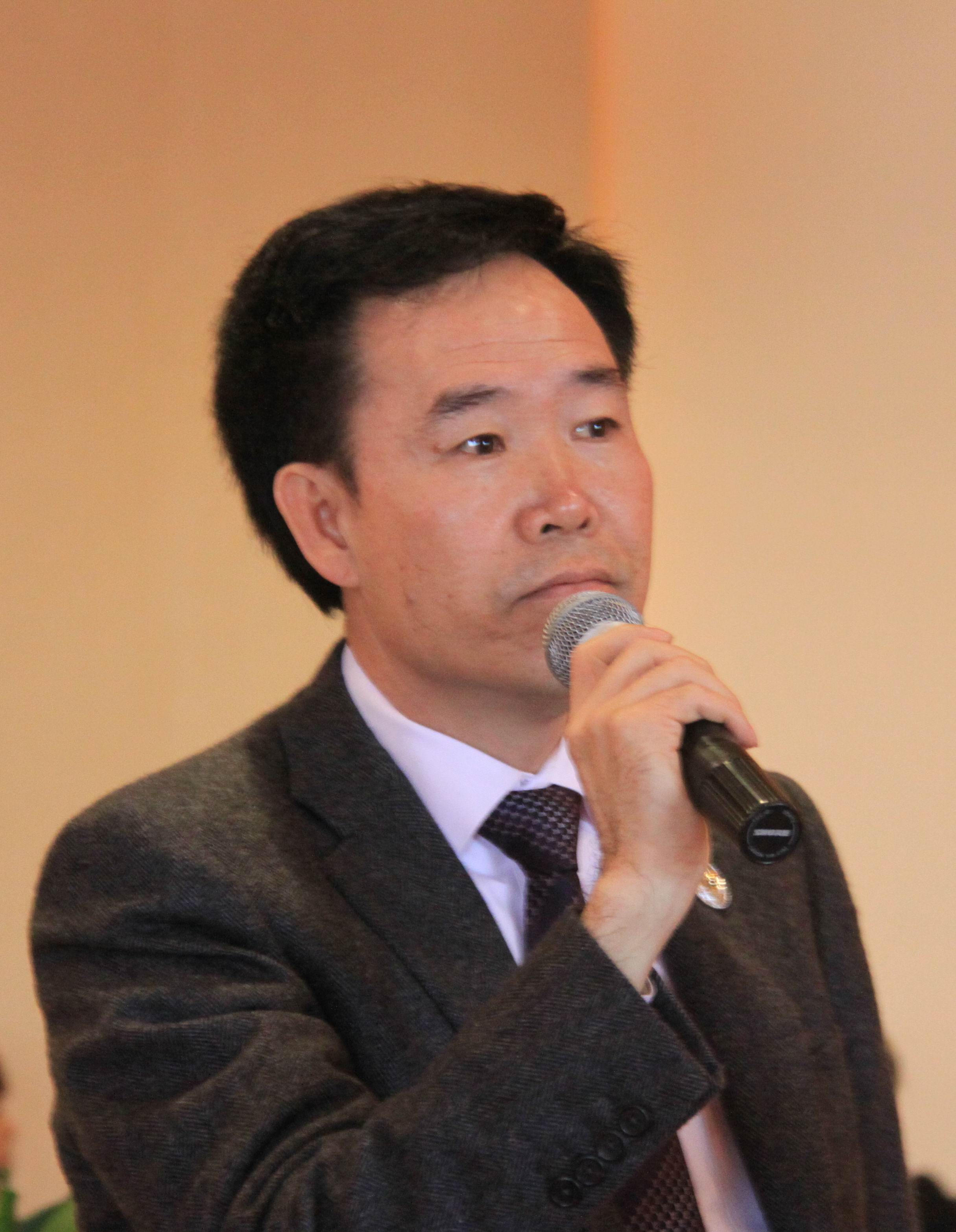图四:省人大代表、广州金辉建筑置业有限公司董事长郑龙辉在会上带头捐款100万元