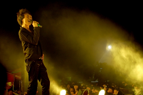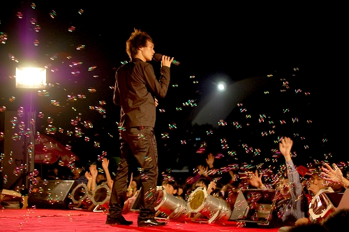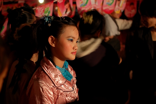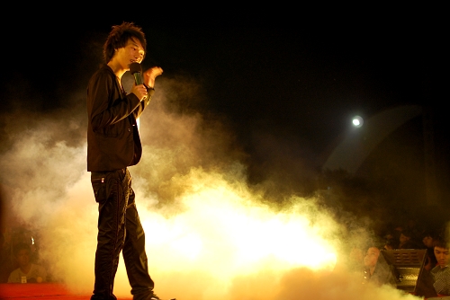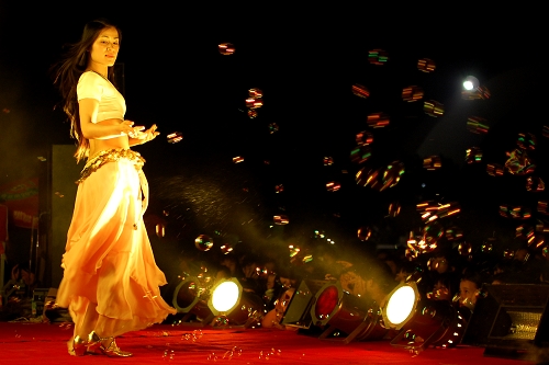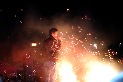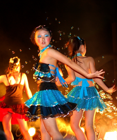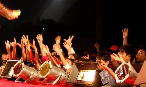 3月13晚杨梅小学门口酸酸乳晚会现场。