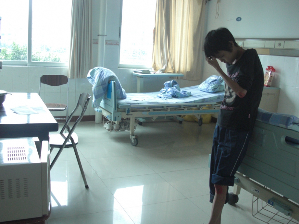 燕梅住的床位是医院里最简单也是最便宜的一种,一个床位50元一天,没有电视,但他们已经很满足,很感恩。为了能更好地照顾她,她妈妈也放下了手头的工作,上到广州照顾她