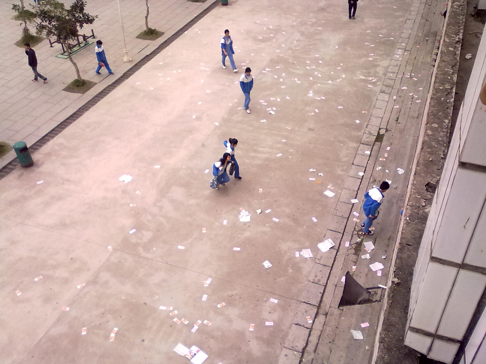 既然学校不退钱和不给我们一个合理的解释,我们就只好送“钱”给你们了――冥纸钱!!!