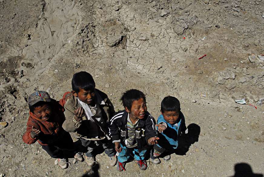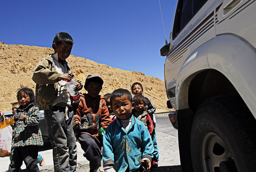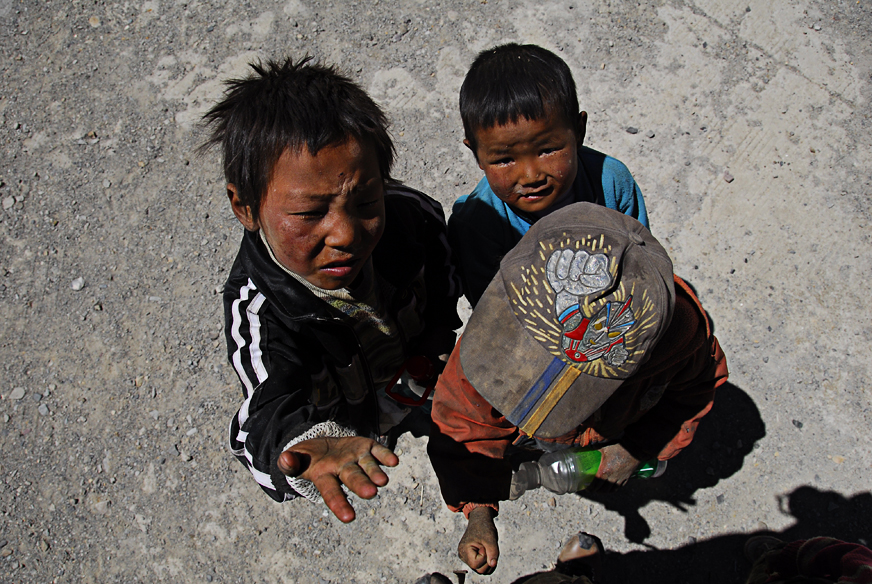 这群小孩向我们乞钱,可是我口袋里没有零钱,只能看着他们可怜的表情