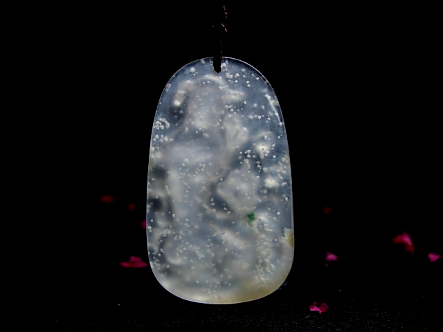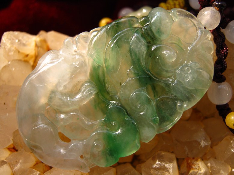 如何“养”翡翠饰品呢?是不是把它包装好压箱底即是护养?这不全对,只是一般的保护,保护饰品外形不受外力破坏,而对其内在的失水起不到作用,其实最好的“养护”最简单最实用的方法就是作为人的装饰物佩挂在身上即可,不论它在人体的哪个部位都有人体温润的小环境。常常佩挂即会补充翠的失水,使其润泽,水头得到改善,一些“棉”“絮”就可以消退变透,这就叫“人养玉”。