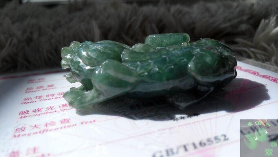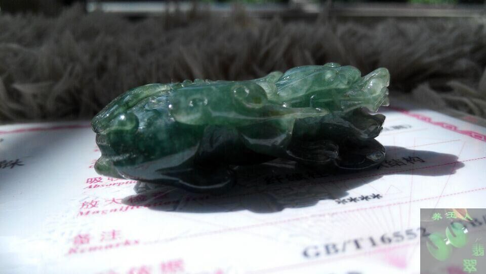 12. 墨翠 我们也叫墨玉,是一种珍贵而稀有的,充满神秘色彩,贵气十足的高档翡翠,色沉如墨,缅甸人称其为“情人的影子”,港台人又称其为“成功男人的影子”,可想而知它受欢迎的程度了。 墨翠实际上并非黑色,是很深的绿色。由绿辉石或碱性角闪石或者次生的氧化物所致。墨翠的好坏跟其它翡翠一样,也有种色之分,工艺在墨翠的价格占很大一部分比例。 墨翠埋藏于地表深处,产量稀少开采有限,现在翡翠市场上墨翠的占有率小于2%,它独特的隐性颜色特征,配合上中国的雕刻艺术和玉文化,所以极具诱惑力,种水好品质高的,价值不菲。 墨翠因其离地心较近故磁场较强,风水师一致认可墨翠具有辟邪、防毒虫、驱猛兽的作用,更有招引财气的磁场。颜色由墨绿到黝黑,在普通日光下或反射光下呈现黑色,而透射光下呈现翠绿或暗绿的色彩,色重、质地细腻、颗粒致密。