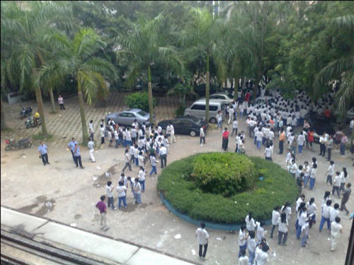 早7时,两百多名学生率先抵达雷州市教育局,在楼下围成一圈,要求面见教育局长林涛。未果后,学生开始前往雷州一中本部。到达本部之后,两百多名学生得知,后面的人已经被闻讯赶来的本部领导以开会的名义“请”进雷州一中,情况不明。