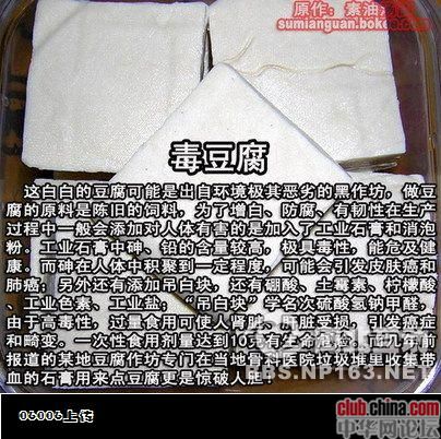 这是“三氯氰胺”大行其道时,看到的一篇――《毒!毒!毒!毒!毒!触目惊心,发人深思!!》,文章中写到“人活着健康是第一位的,失去健康自己就失去了革命的本钱,因而我首先开始关注饮食健康。