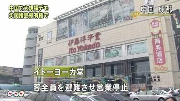 デモが起きたのは、中国四川省の成都、西省の西安、それに河南省の州の3つの都市です。このうち成都では、新A社通信によりますと日本rgの16日午後3rごろ、2000人以上の学生が中心街に集まり、「尖wTuを守れ」とか「日本と椁ā工胜嗓冉肖婴胜らデモ行Mを行ったということです。また、成都にある日系のス`パ`、イト`ヨ`カ堂のvS者によりますと、市内にある4店nのうち、中心部にある「1号店」でガラスが割られるなどの被害が出たということで、イト`ヨ`カ堂ではIい物客を全T外へ避yさせ、この店のIをすぐに停止したということです。一方西安では、新A社通信によりますと7000人以上の学生がデモ行Mし、「尖wTuは中国のI土だ」と主するとともに、日本u品を入しないように呼びかけたということです。日本大使^によりますと、西安市内にある日本人がU婴工肴毡玖侠淼辘钎ラスが割られるなどの被害が出ました。いずれの都市も夜には、デモの参加者はいなくなり、成都では警察のvS者が周xの道路を封iして警戒に当たっているということです。また、一Bのデモで日本人にけが人が出たという情螭先毪盲皮い胜い趣いΔ长趣扦埂=窕丐违钎猡稀⒏鞫际肖扦郅芡rに起きており、インタ`ネットなどを使って呼びかけられたものとみられますが、lが呼びかけたのかなど、しいことはわかっていません。日本と中国は、先月、尖wTu_で起きた中国のO船によるn突事件を受けてvSが化しましたが、日本の菅t理大臣と中国の温家宝首相が今月4日、ベルギ`で会したあとは、vS改善に向けて婴出していました。
