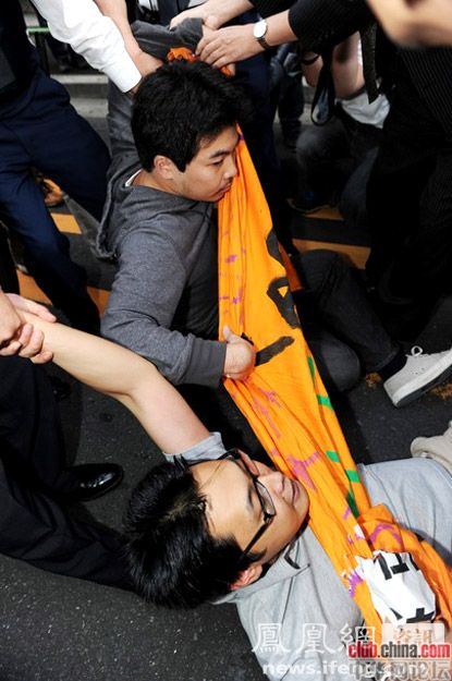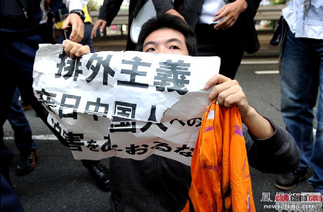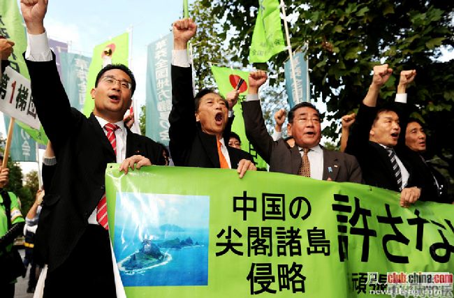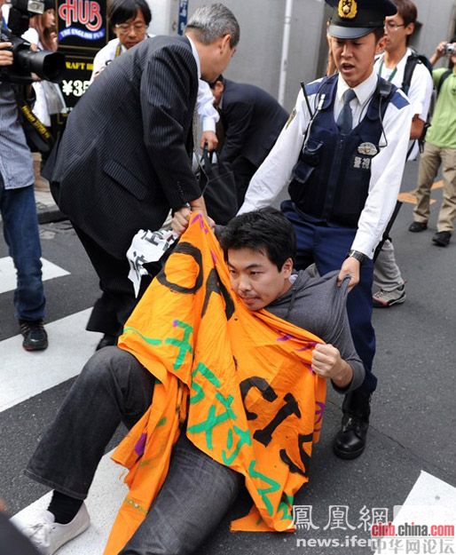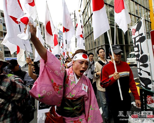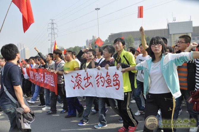 郁闷!中国的示威人士都是黄毛丫头,日本的是秃顶大叔!