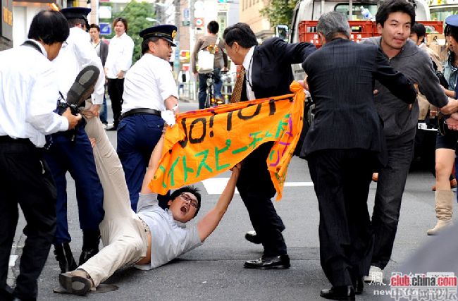 旅日华人抗议右翼反华游行 被日本警察强行拖走