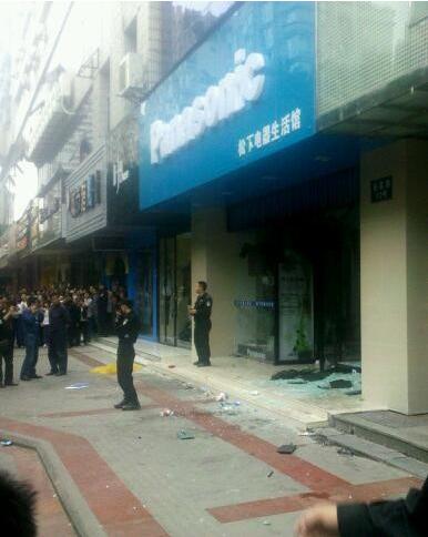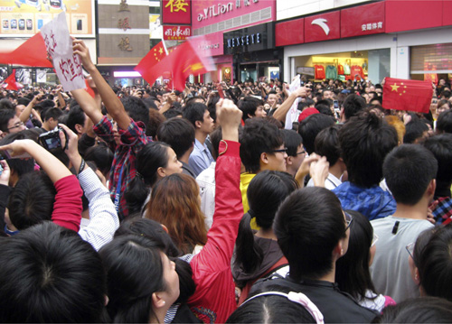 昨天下午2点左右,几千人聚集在成都步行街春熙路的日资百货公司伊藤洋华堂(Ito Yokado)门外,高呼反日口号,并向百货商场投掷鸡蛋及矿泉水瓶,直到近4点才散去。(路透社)