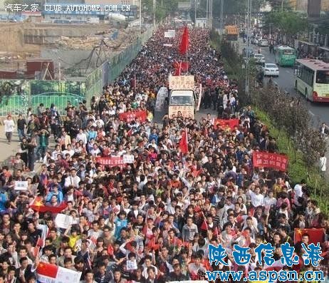 今天在西安市爆发了继上海反日游行之后国内第二次大规模游行示威活动。游行以大学生为主力军。正逢周末,游行活动带动了一大批在职爱国知识分子。西安抗日游行10月16日14:00在大雁塔北广场集合并进行游行,路线是大雁塔北广场――雁塔西路――韦二街――长安中路――省图书馆――南门――钟楼。