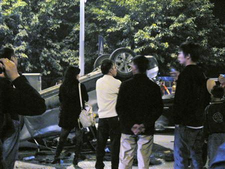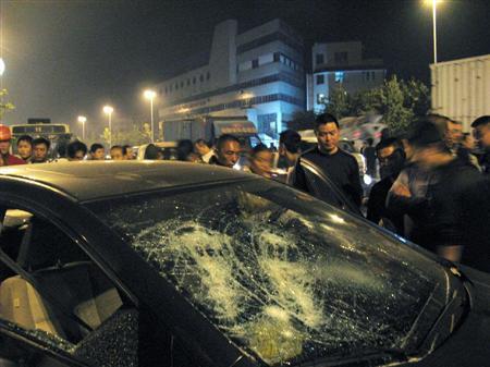10月17日,在绵阳被示威者破坏的部分日产轿车。(日本共同社)