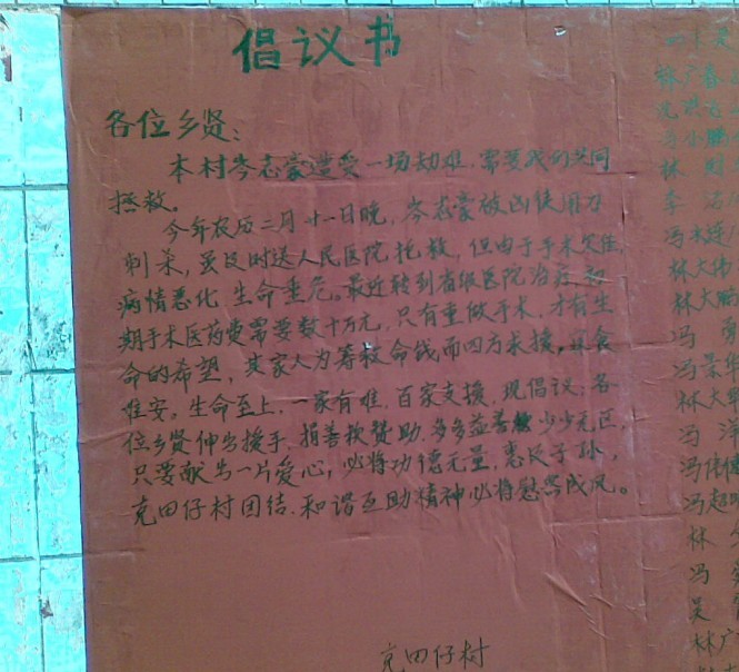 [attachmentid=259024] QUOTE(铁腕扭乾坤 @ 2011年04月10日 Sunday, 12:48 AM) 确实是一件令人痛心的事情!依照其案情,司法机关应该是会以伤害案处理。 [snapback]3125097[/snapback] 现在伤者情况仍然不稳定, 情况危急,要动二次手术才有保命的可能,目前已转移到省医院去,单光手术费就要数十万. 我有在论坛一个帖子求助,村里为挽救一条90后的生命,正在踊跃发动捐款,但是还只是杯水车薪.希望有爱心人士能帮助一下,先把性命保住. 有爱心的大家可以站内联系我,我可以和伤者家人联系你们.