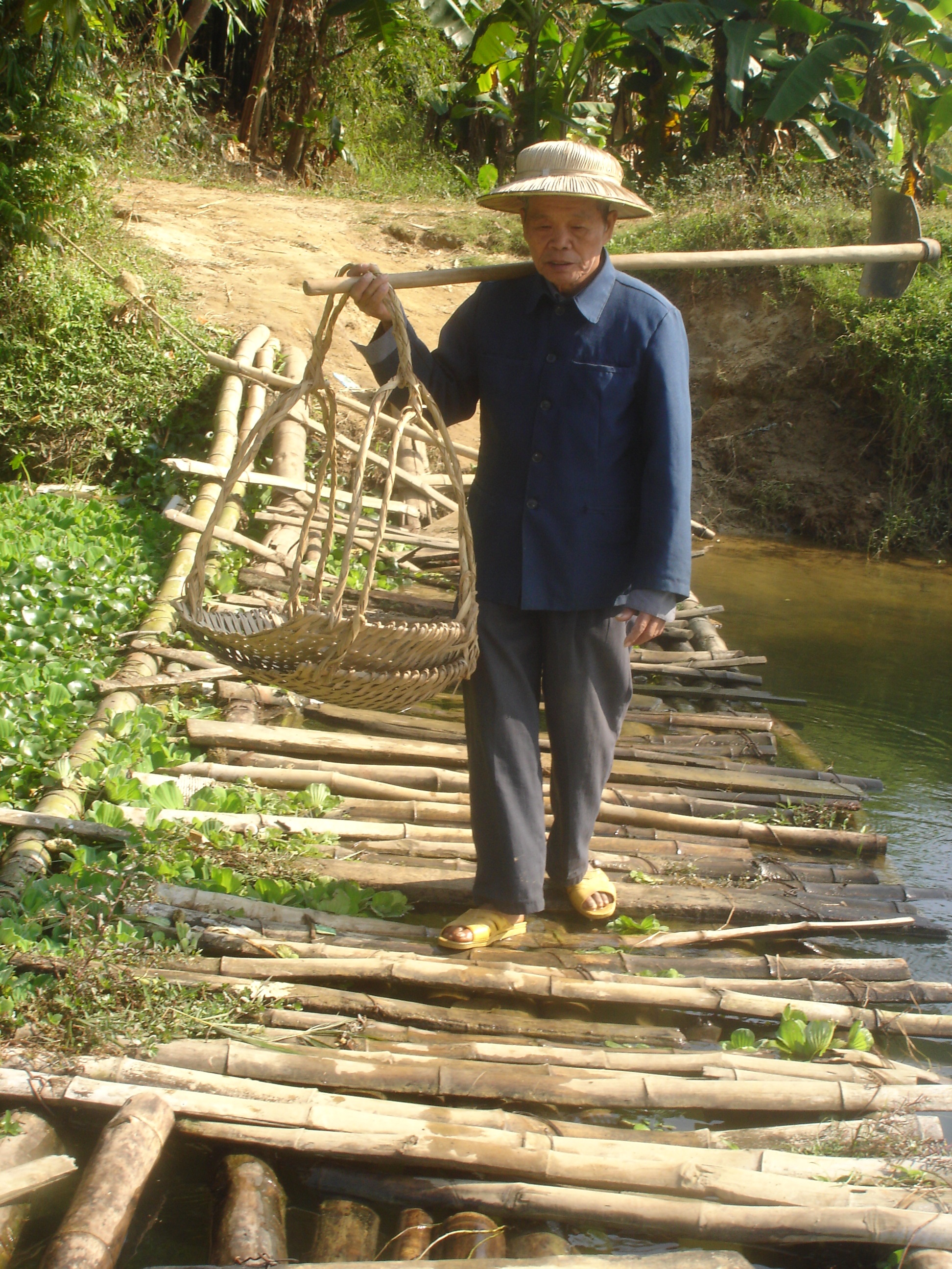 电白县堂砥村委大秧地村原有水泥桥长55米,宽5.5米,此桥于1986年由交通局拨款创建,在2008年6月10日被洪水冲毁,西至大秧地村屋背禾塘岭往沙琅方向,为本村农民耕种、孩子上学及出入沙琅方向人们的必经之桥,东至本镇观青村委,罗坑、那霍等地人们经沙琅火车站至黄岭等地往返出入。此桥对大秧村民及路经此地的人们非常重要,现村民利用竹木自搭一条桥通行,由于众多人们日夜行走,自制桥早已残烂不堪,几经修补,桥下水急又深,人们过桥惊心动魄,近三年来,已经发生无数起掉落河的事故,经过此桥的人们,常常被称为“落汤鸡”。笔者路经,巧遇一村民挑着农产品拉着一个小孩在寒冻天气掉进河里,成了“落汤鸡”(附照片)。如遇下雨天,人们根本无法过渡,多地的村民要绕远道通行,当地村民依靠种四季豆、辣椒、香蕉等农作物为生,村民为了出入耕种,冒险行走,挑重担时必须绕远道而行,十分不便。
