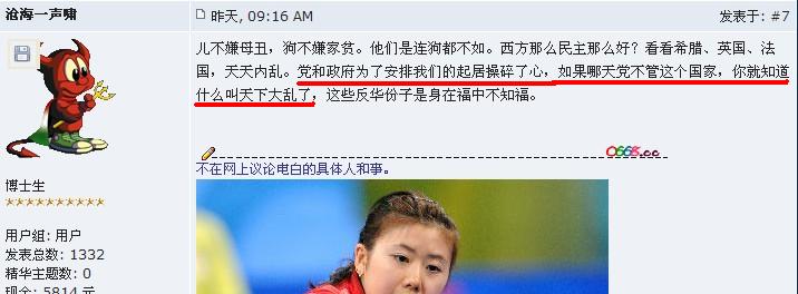 我唯一有兴趣的是,你是不是真以为自己很了不起?很能写文章?虽然编排上你不是很强,但我不关心这点,总觉得你太自恋总以为自己电白论坛文采第一,别人或者都是小孩子或者都不如你,其实,你老了,你看的书接触的东西都太少了,你的文笔及你谈论的范畴都让人惊奇的太少,囿于你的年龄及思想及年代限制。