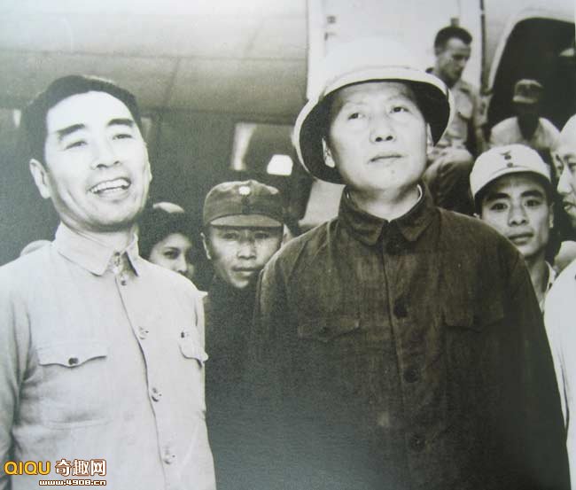 1945年10月11日,毛泽东飞返延安时,在重庆机场与送行的张治中、陈诚、陶行知等合影