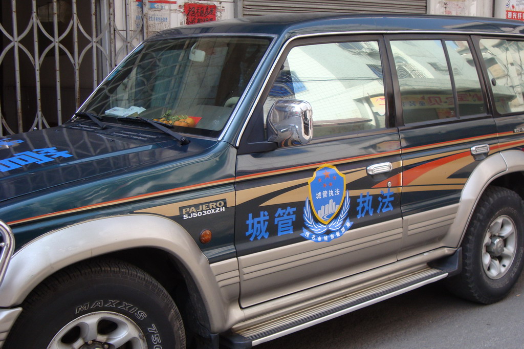 2011大年初二在茂名市电白县城新风街看到最牛的城管车(三菱帕杰罗越野车),在车上下来4个大小家属的人,开车的是一个40多岁165左右偏瘦的男人,他们走进新风街的小巷里,估计是刚刚从外面回家的。很明显这是政府公车私用了,但是令人费解的是为什么还把车牌故意遮挡,还停在人流量非常高的马路上,让人很气愤难当!