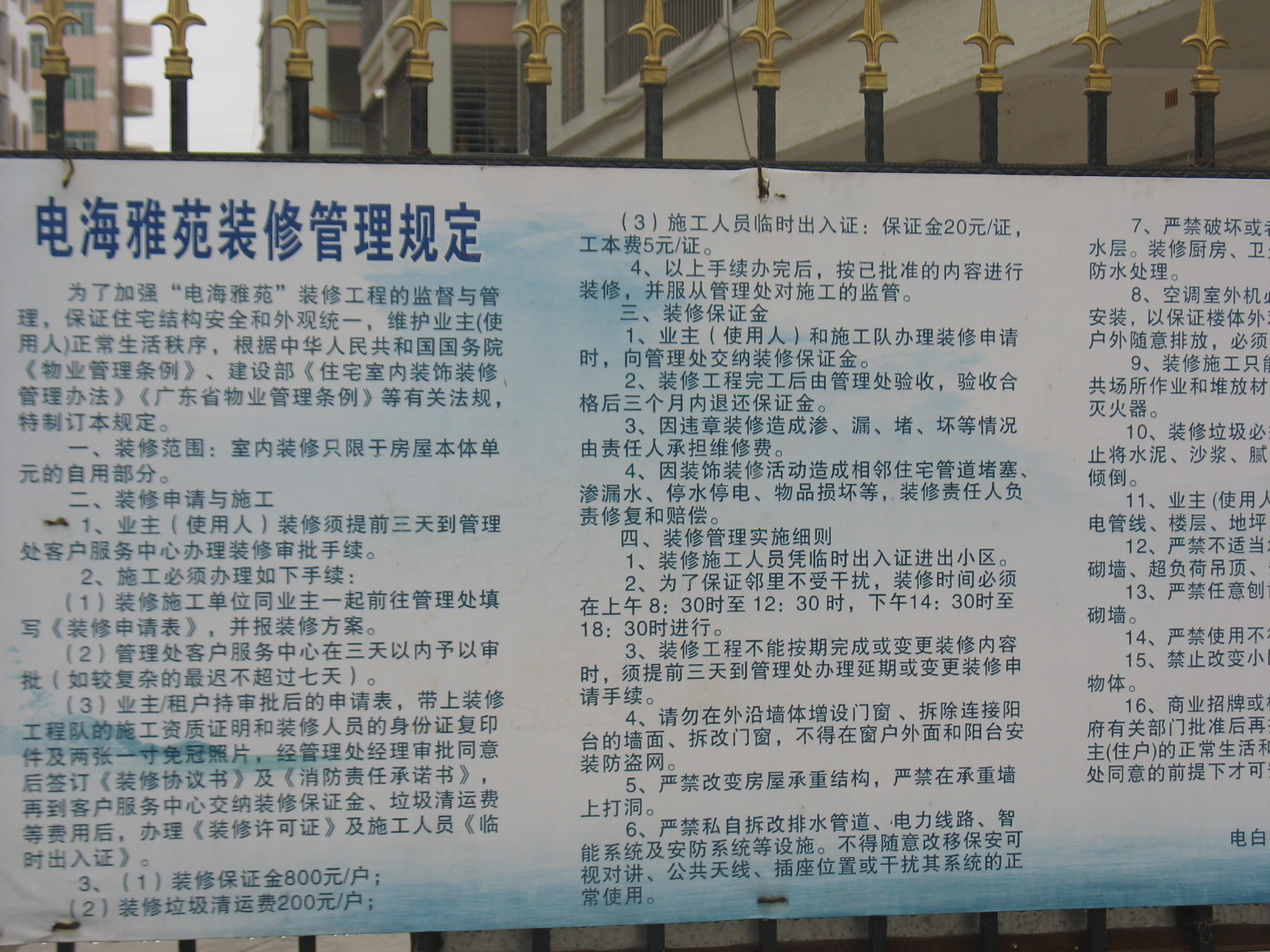 刚买房的时候,开发商口口声声说后面有一道围墙,中间开一个后门,把四幢楼房围成一个小区,中间的绿色地带最适合小孩子玩耍,说得大家心动不已!
