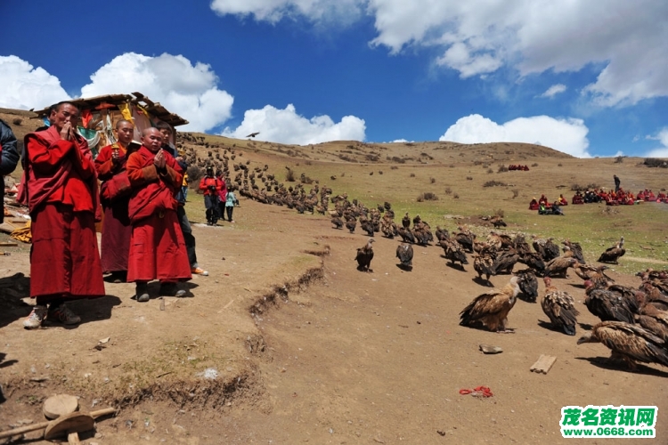 天葬是藏民族特有的丧葬方式,它以把死者喂食秃鹫视为吉祥。对西藏天葬习俗长期研究的西藏社会科学院民族研究所所长巴桑旺堆说:“藏族天葬习俗已有上千年历史,目前八成以上的藏族人依旧使用天葬的丧葬习俗。”据自治区民政厅调查显示,西藏目前共有1075座天葬台,同时有近百名天葬师。