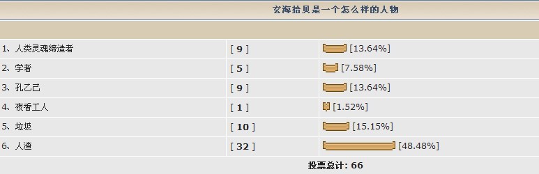 卖弄那点伎俩,自己也不曾留意,所用的标点符号、口气及排版上“两个海”都同出一窿,谁人不明,谁人不晓?还好意思“玄海、玄海”的叫,看来没人八过你。