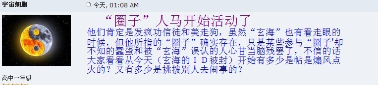 玄海总觉得自己到处被人误解,总觉得这世界排斥他,上个论坛又要被人诟骂,没人理解他的才华没人理解他维护中华伦理的所谓赤子心。