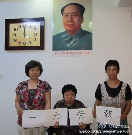 右起:朱玉妹、陆菊华、吴产娣。皆因2010年6月29日在北京乘坐14路公交车,被驾驶员崔林指认乘车不购票,被常州市劳动教养委员会决定劳教一年。常州市新北区法院、常州市中级法院判决维持劳教决定。三人不服,正在准备申诉中。 搜艘,这理由无语了