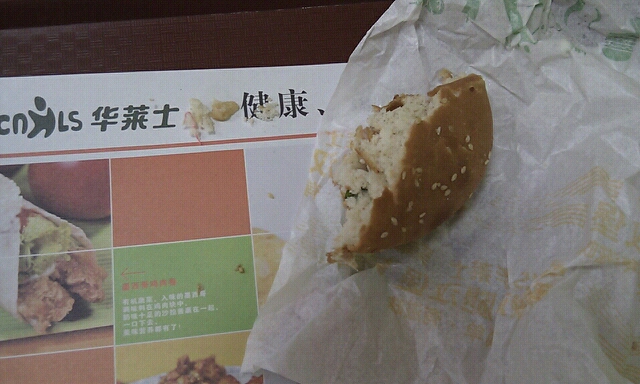 水东车站诺基亚旁边新开了一家"华莱士"汉堡炸鸡,今天经过正好,肚子饿,看到上面写着汉堡12块三个, 穷吧,吃这个还划算,就带朋友去吃吧. 果然,这家的东西真是"人间极品"!吃汉堡咬了几口,感觉有"刺",幸好没咽下去啊 ,不然要了我的命啊! 鬼子节刚过,我逃过一劫,福大命大啊!