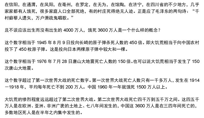 饿而死,饿死的人占总人口的八分之一以上。然而,多年来,这个重大事件一直秘而不宣,时隔 40
