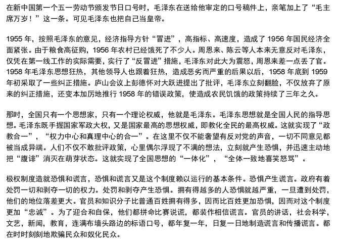 大规模的政治斗争封住了人们的嘴,为说假话扫清了障碍。谁要对高产卫星、人民公社、大办钢铁等