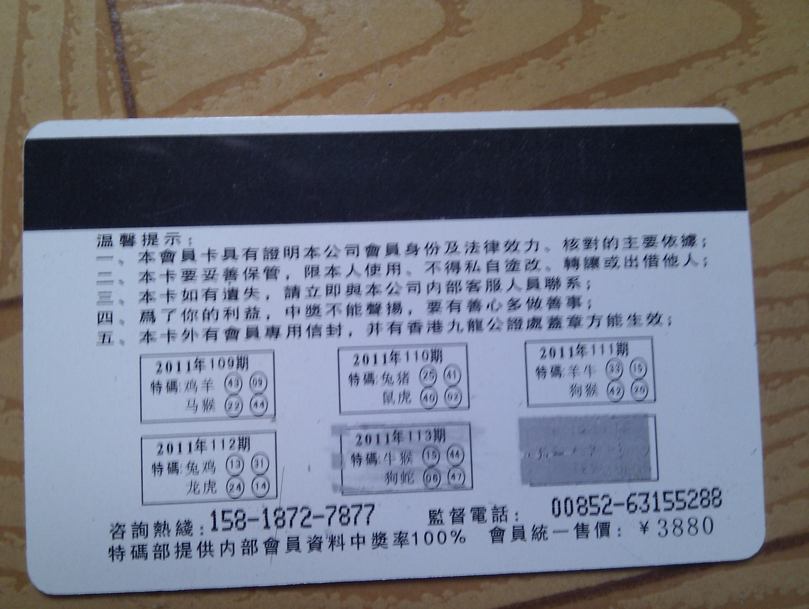 记者问加入该公司应该怎样办理手续时,该男子马上表示:“最好把你的详细地址和家庭状况通过短信方式发到我的手机上,如果符合条件,我们将提供一个账号,只要马上把3880元钱打过来,会员卡和发票将在两天内寄到,公司也会提供特码,保证你期期中大奖。”