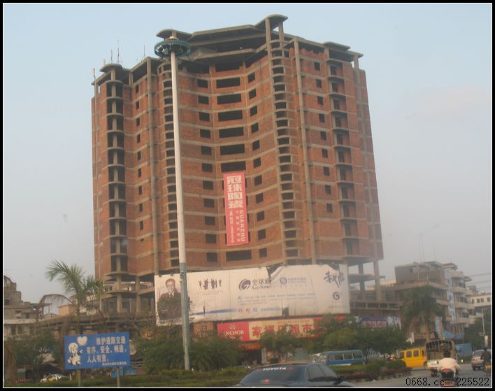 春 春风绿野 大学一年级 注册 2009-02-05 消息 709 反馈评分 0 点数 0 2011-09-28 #1 九十年代,水东三角大圩转盘有栋十九层的大楼,由于资金链断裂,终成烂尾楼,原本想要建成水东标志性建筑,却沉睡了十多年,其间有人传说是楼歪了,变成“楼歪歪”,是故停工。 新书记到来后,积极联系买家,终于促成该楼的“新生”,商家注入资金,准备将之改造成星级酒家,目前项目已动工。建成的地下停车场出入口设在原转盘草苹处,这也是新书记的得意之作。停车场出入口的解决,是盘活这栋大楼的关键所在。