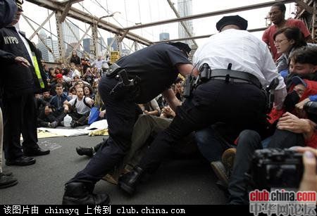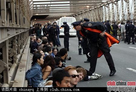 美联社(纽约)――本周六,一群对公司贪婪、全球变暖、社会不平等和其他受委屈的地方进行抗议的示威者们包围了纽约布鲁克林大桥,并封锁了一条车道达数小时。他们与紧张对峙的警方发生了冲突,700多人被捕。