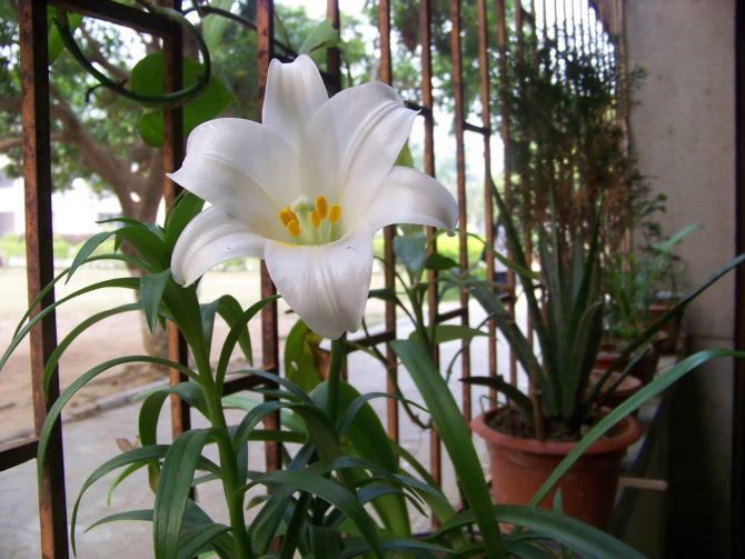 宿舍阳台里种了一排花,各式各样的品种,正逢开花之季。但从花蕾到花朵,似乎最美的时间也只是有如昙花一现,因为花开不久,就给学生给摘去了或者给折断了花柄。看到开得正青春年华的花朵,转眼间就不见了或者给折断了,心里就是那个恨仿佛要说:“要是给我抓到,我一定让你们好看”。可惜每次我都抓不到,从百合花,到剑兰花,再到现在的金盏花和白兰花。从百合被摘去的时候我就想,那肯定是男同学摘去讨女同学欢心的,我那时就心理去诅咒这些“狗男女”・・・・・我吐!但不管我怎么吐,甚至写出一个标语“看花不必动手,赏花只要有心,花自然美在你心”但他们依然一二再再而三地把那“鲜活”且令人赏心悦目的花扼杀了。我辛辛苦去照料去赏不了这个美丽的结果,有些甚至照片都没拍到,我觉得我恨啊!