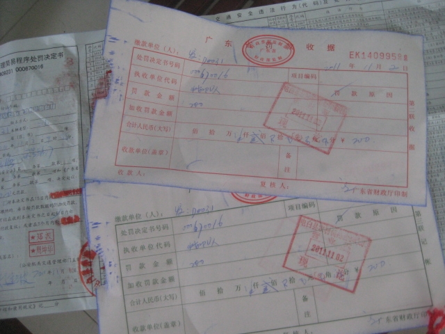 这是本人在广隆岭电白农信联社交了罚款之后,所拿到的有关单据。