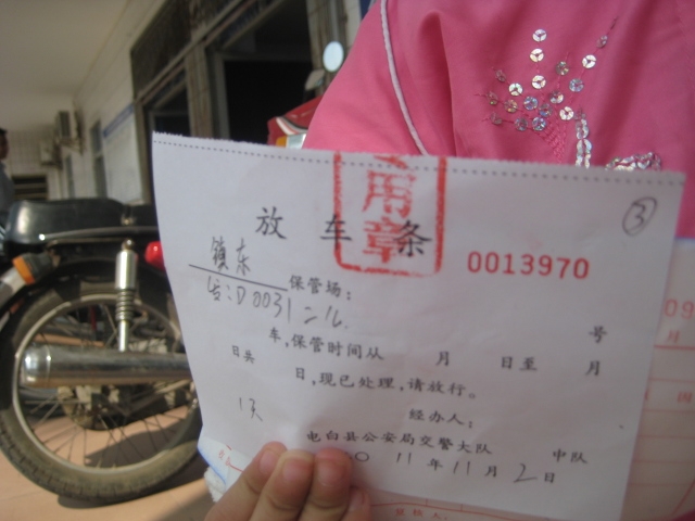 这是本人费尽千辛万苦之后,终于拿到的放车条。拿到它的那一刻,我的泪花如雪崩……