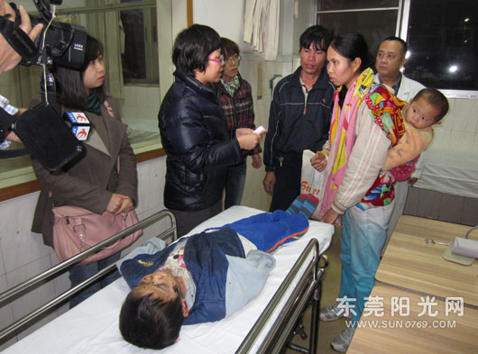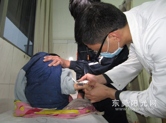 现场一名社工告诉记者,常平妇联跟她们一起了解到这个情况后,马上就把秋怡带到医院来治疗。