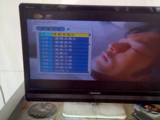 今天到高州根子吃饭喝酒,其间看下朋友家的数字电视,晕,居然有香港有线电影台,天映频道,莲花卫视,星河频道,TVB电影台,()本港台,翡翠台)居然不是插播的,电白,你脸红不手机拍的图片,不敢恭维
