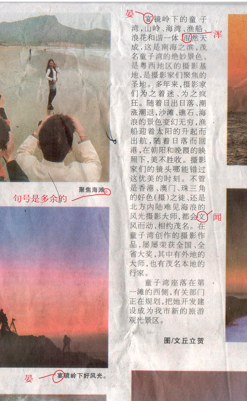 晏镜岭和童子湾,对于茂港、电白人来说最为熟悉不过了;但是对于外地人来说(如信宜、高州、化州等),可能他们会很陌生。现在,茂名日报竟然将“晏镜岭”打成“宴镜岭”,闹出了天大的笑话,如果外地人 “以鹅传鹅”,将会对晏镜岭造成极大的误解,对我们打造新的旅游景点产生负面的影响。请茂名日报有关领导迅速处理此事,给广大读者一个交待,还晏镜岭一个“清白”。