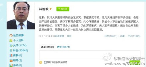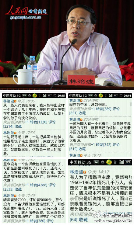 新华社甘肃分社社长林治波,因否认三年大饥荒饿死人遭网友炮轰