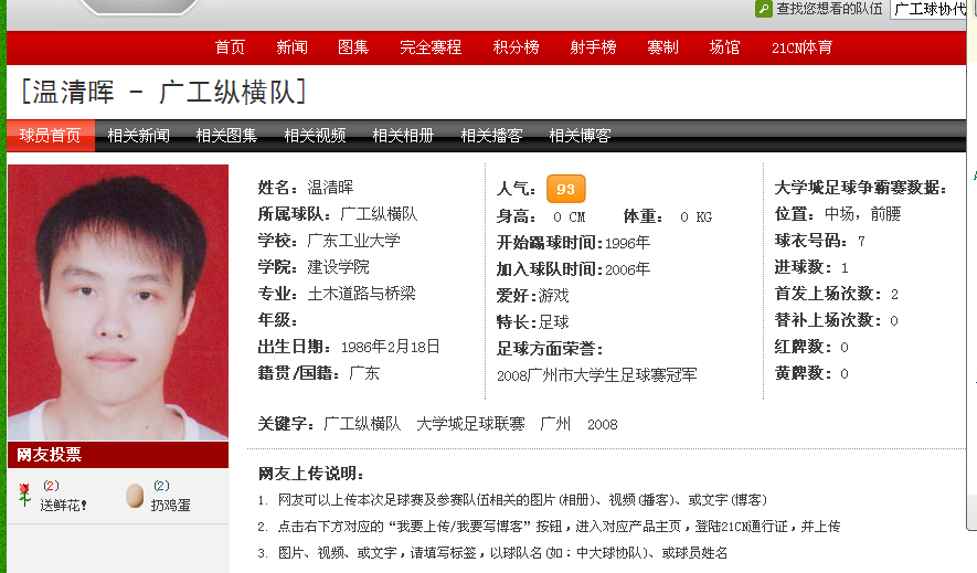 QUOTE(AKenChan @ 2013年03月08日 Friday, 04:32 PM) [attachmentid=309423]曾经的广工校队绝对主力。。已经毕业。。现在为广州电白同乡足球队中场核心。。 [snapback]3508734[/snapback] 曾荣获2009年电白县最佳球员荣誉。。。。。声明:和温清晖合影的那个不是本人。。他也是电白足球界的狂热分子。。叫林敏毓。。现为电白珠海同乡足球队队员。。。。[attachmentid=309424]