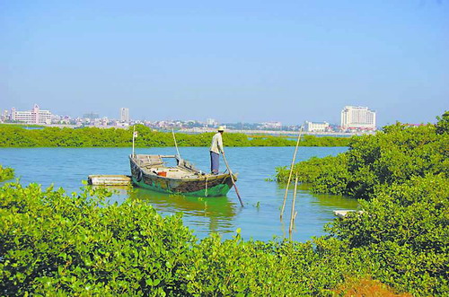不如建成旅游景点,有专门人员驾船在红树林里转和出去享受海浪。