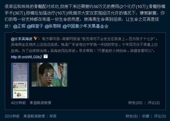 幸庆我和妹妹骨髓配对成功,离骨髓移植手术费用缺口还非常大...