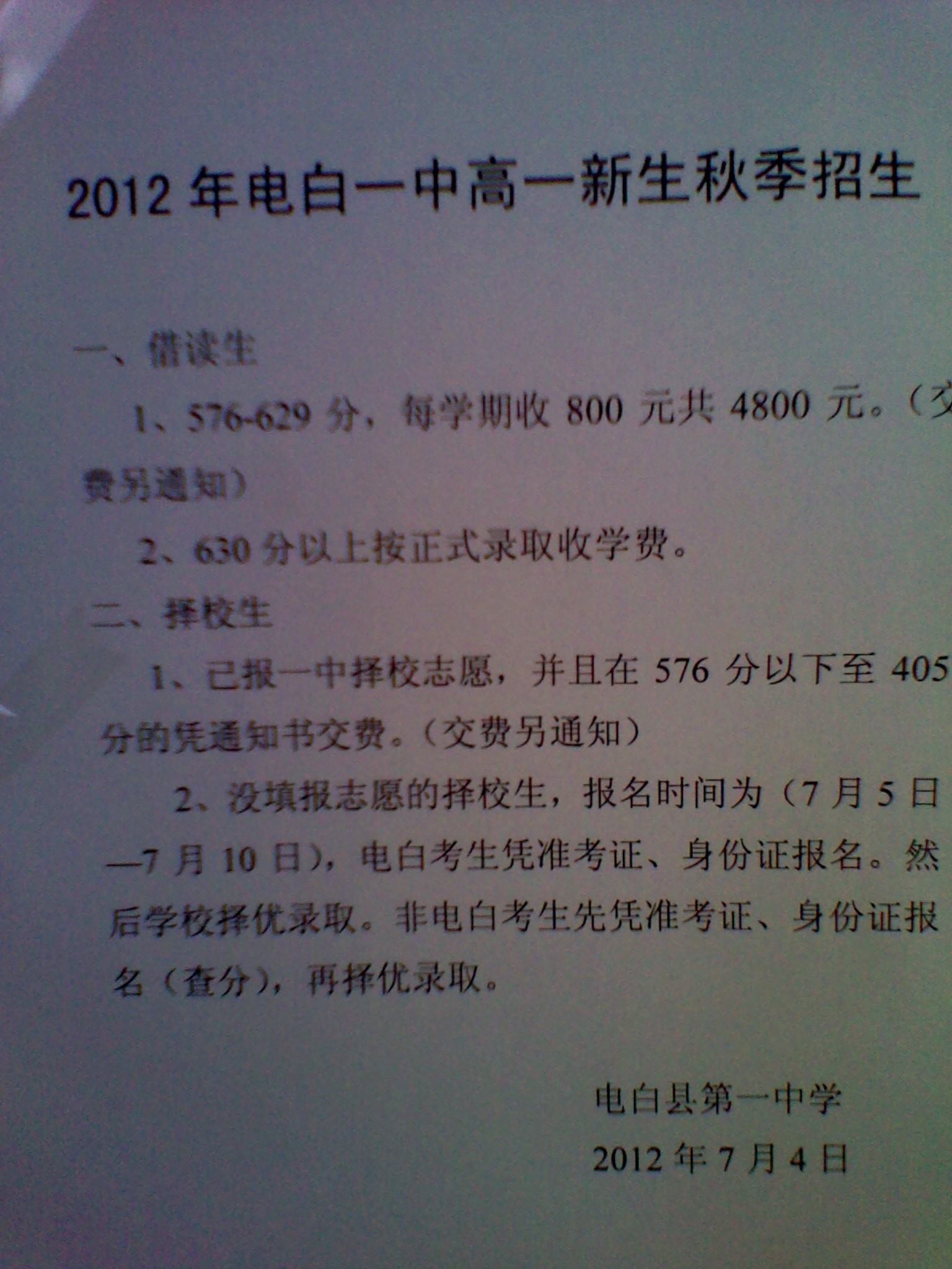 QUOTE(青年突击队 @ 2012年07月04日 Wednesday, 10:46 AM) 电白一中分数线576 [snapback]3383095[/snapback] 赞一个,我今天早上也电话给县招生办问过了,电白一中分数线是576,应该不会变啦,基本是这个幅度左右啦