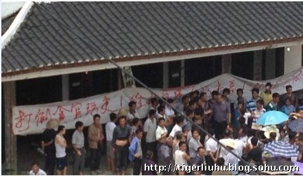 21日几千名老百姓手举横幅“打倒贪官污吏,维护公民权益”的标语一路走到坛厂镇政府,把政府砸了个遍。