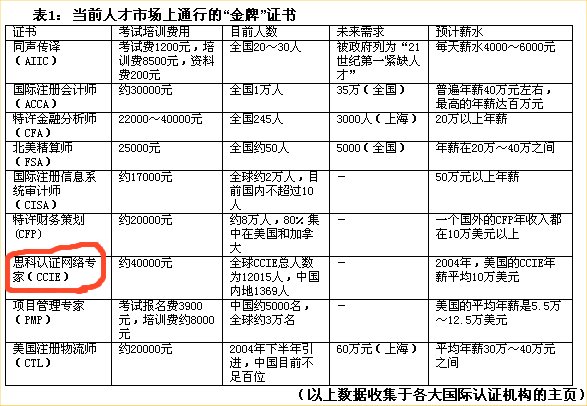 4。物以希为贵。截止至2005年5月1日全球CCIE人数统计为:12121人