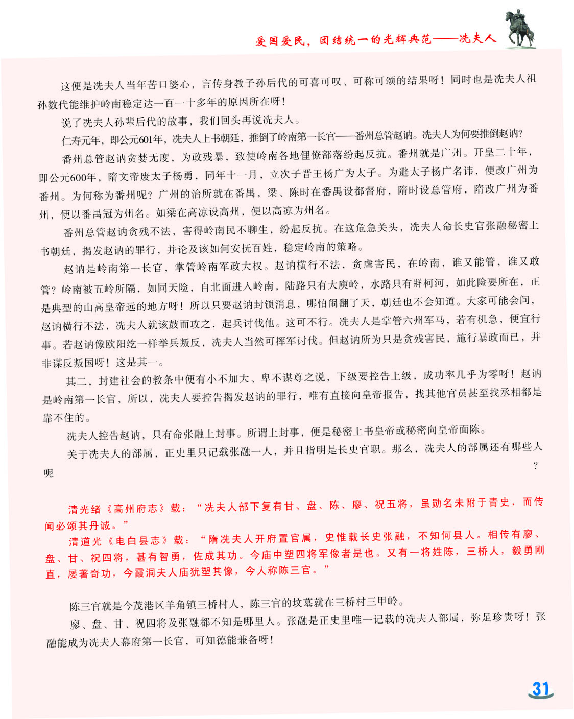 图片展示:《爱国爱民,团结统一的光辉典范――冼夫人》