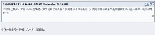 呵呵,毛右也来秀下限,可喜可贺!毛左秀下限是认知问题,如楼主。毛右秀下限是人品问题,如肆十如虎。 从不正面讨论问题,习惯于打黑枪使绊子、断章取义插赃嫁祸,毛右费那么多心思,将裁图改了又改,将不同的裁图合成一个,并且不给原文链接,有意断章取义,误导公众,你就这些招啊? 退一步,就算你想表达的公众都认同,那又能说明什么呢,思想能入罪吗?秀人品下限不是这样秀的,懂么?