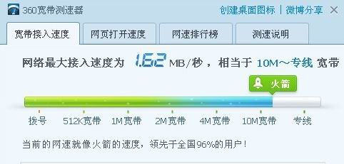 U UNCLE 荣誉会员 荣誉会员 注册 2008-04-05 消息 3,084 反馈评分 0 点数 0 2012-11-12 #4 对于我这不打游戏少看电影的来说200KB/秒都够了,况且目前还高出不少... [attachmentid=302784] 附件 网络5.jpg 20.6 KB · 查看: 237